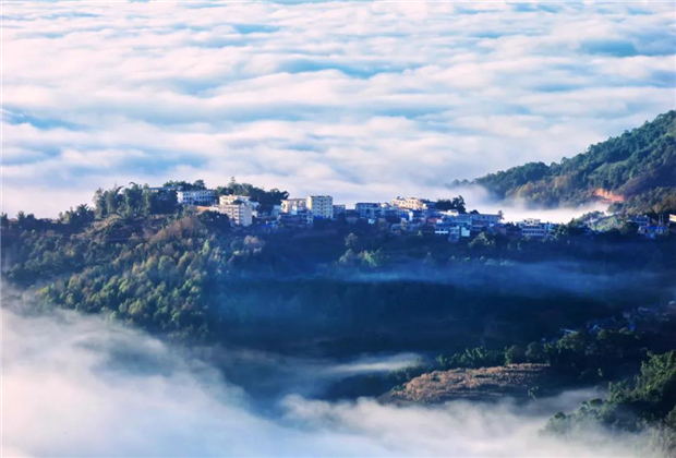 這里的景都是飄飄然有種不真實的感覺,像那深山里的寨子,藏在云霧間,只露出星星點(diǎn)點(diǎn)的房頂,僻靜得只聽得見泉水叮咚的聲音,若不是青石板上還有馬蹄印的痕跡,倒真不知還有人居住。而云海則更是虛幻,時而平靜如溫潤的細(xì)紗,時而洶涌如奔騰的巨浪,待太陽出來,卻又全都蒸騰散盡了。